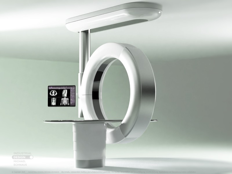 Mobile systems block floor space and can disrupt sterile workflow. A ceiling-mounted solution keeps the floor free and ensures unobstructed access to the patient.